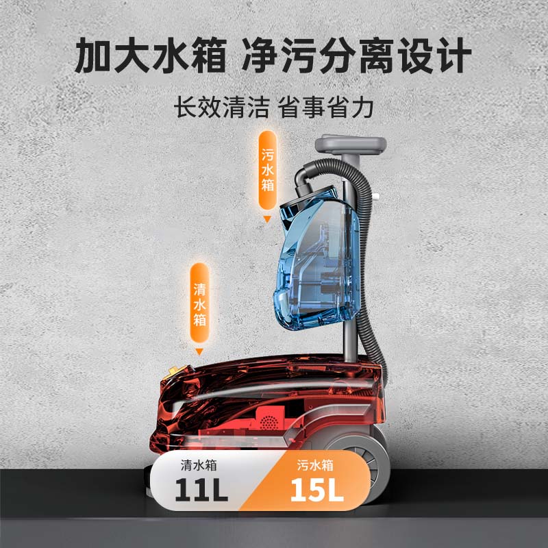 榮事達手推式洗地機RS-M15:適用于狹小擁擠的區域。精致、靈活、操作方便的設計,標準的三維結構,免維護、鋰電款多項選擇。