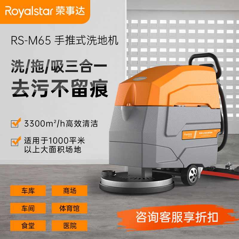 榮事達手推式洗地機RS-M65:是一款堅固耐用的手推式洗地機,可提供高效的清潔效果。它確保最大程度地吸水和清除污垢,保證專業清潔、干燥的地板,為干凈整潔的環境做好準備。?設計優雅且機動性強,可確保輕松操作和輕觸操作。