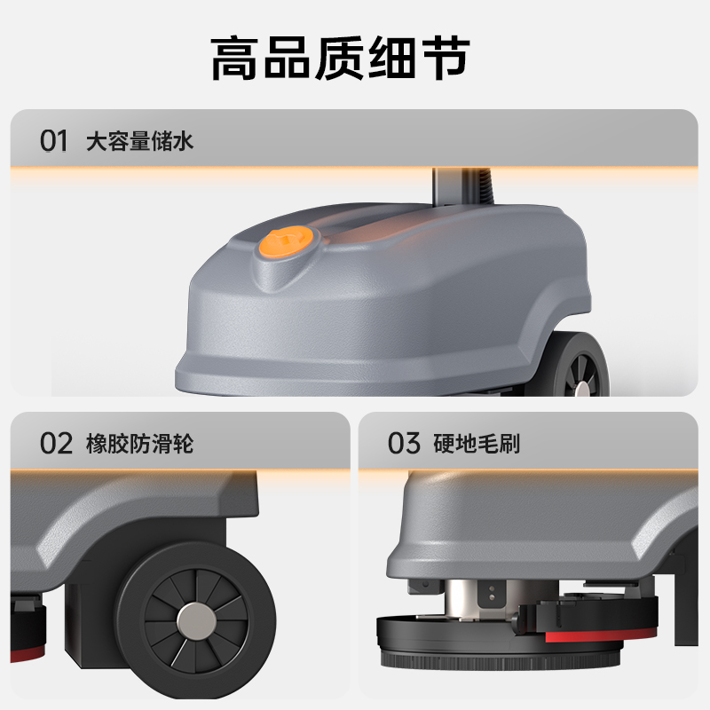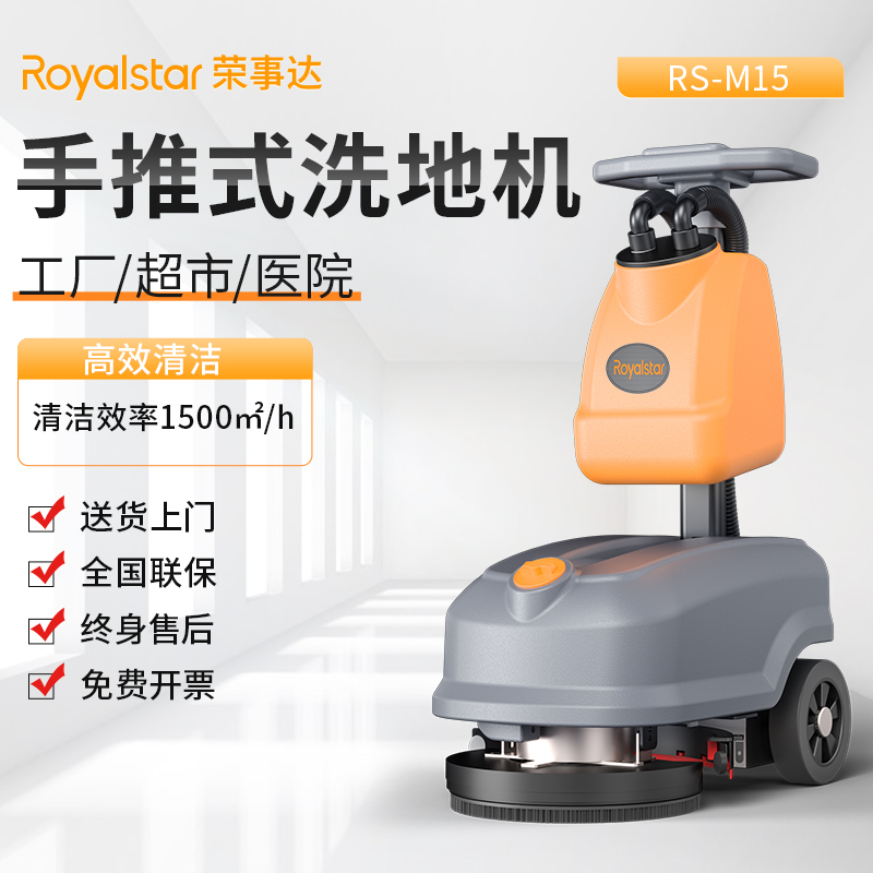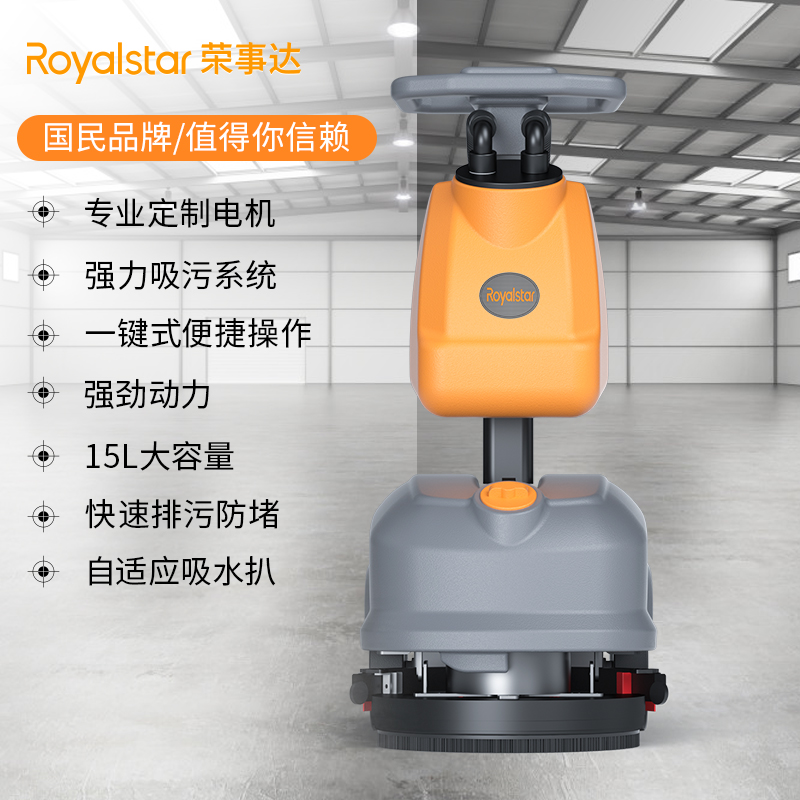 榮事達手推式洗地機RS-M15:適用于狹小擁擠的區域。精致、靈活、操作方便的設計,標準的三維結構,免維護、鋰電款多項選擇。